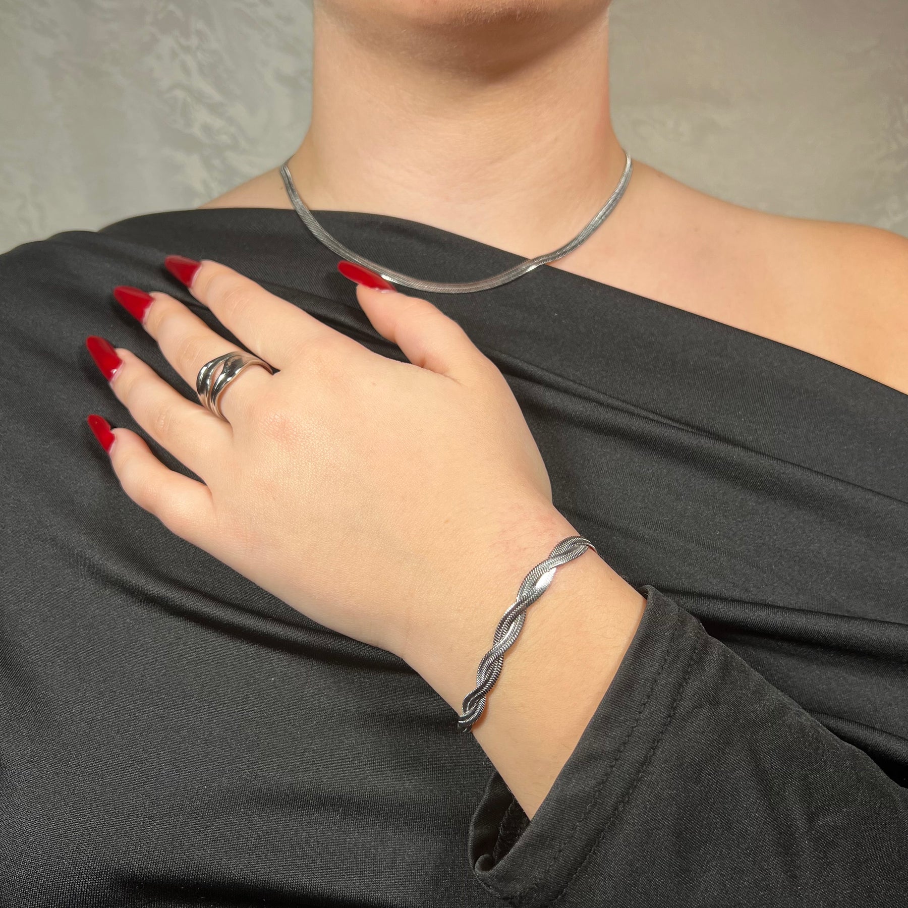 Un design che richiama una treccia morbida e fluida, con un effetto ondeggiato che cattura la luce ad ogni movimento.